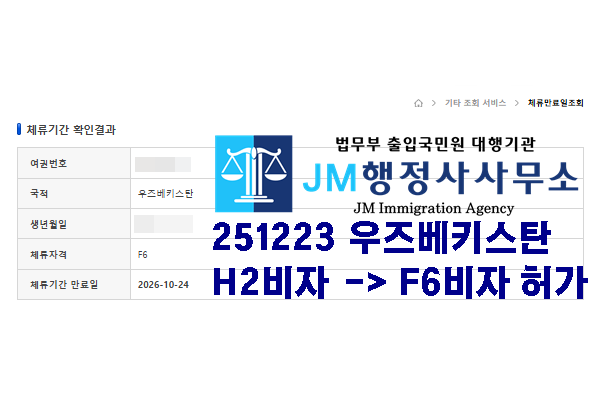 251223 우즈베키스탄 H2비자->F6비자 허가