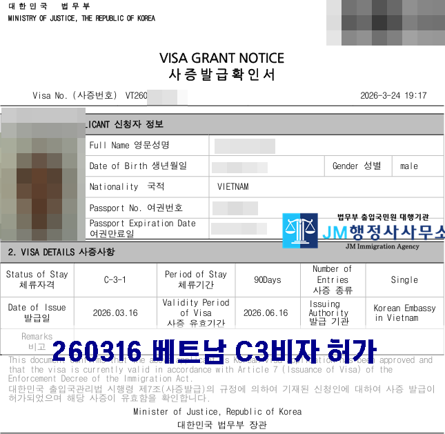260316 베트남 C3비자 허가