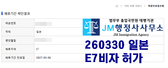 260330 일본 B1비자 -> E7비자 허가