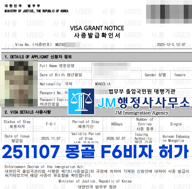 - 첨부파일 : 251107 몽골 F6비자 허가.png (173.2K) - 다운로드