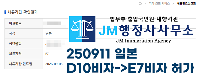 250911 일본 D10비자-E7비자 허가