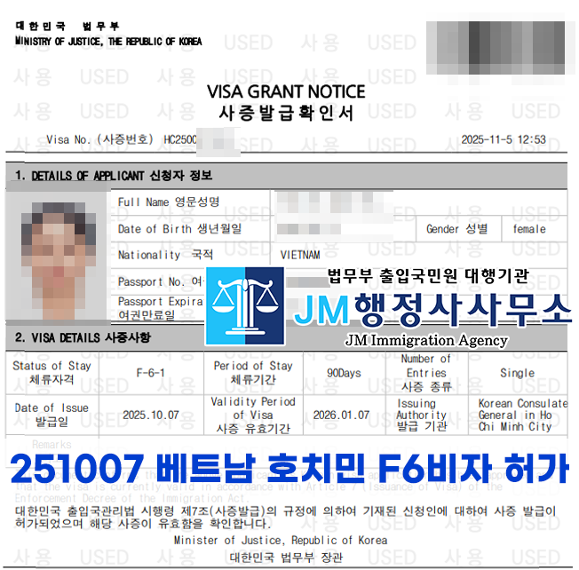 251007 베트남 호치민 F6비자 허가