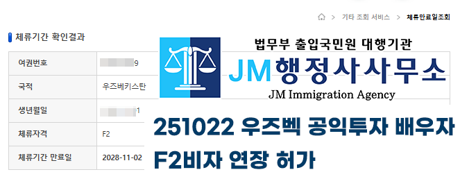 251022 우즈벡 공익투자 배우자 F2비자 연장 허가