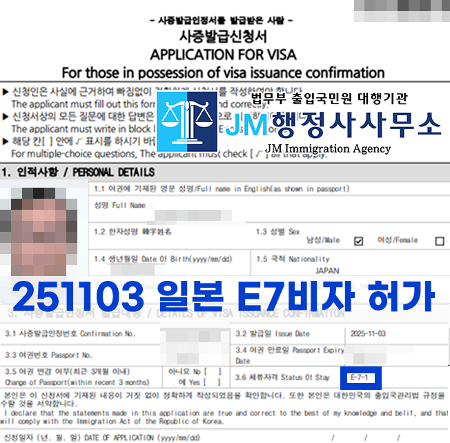 - 첨부파일 : 251103 일본 E7비자 허가.png (255.0K) - 다운로드