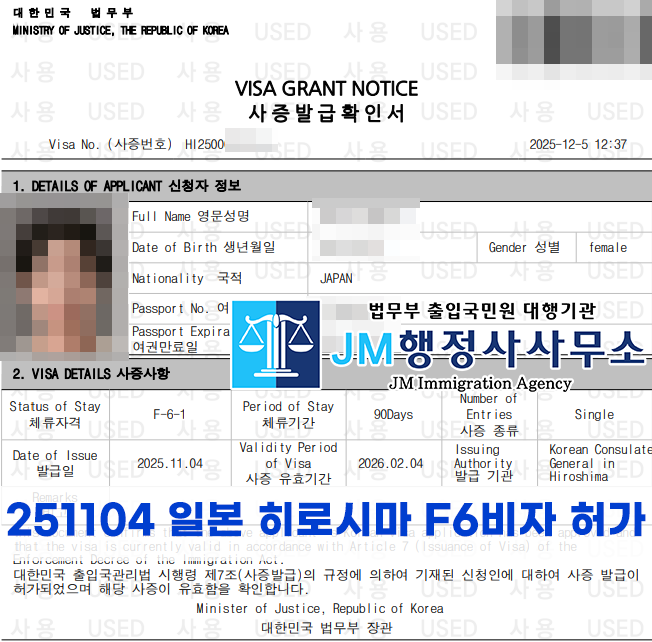 251104 일본 히로시마 F6비자 허가