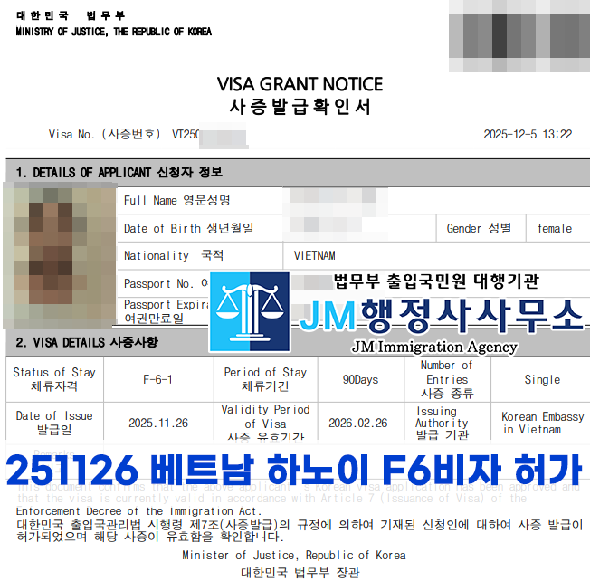 251126 베트남 하노이 F6비자 허가