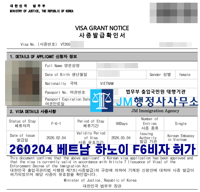 260204 베트남 하노이 F6비자 허가