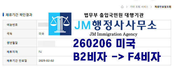 260206 미국 B2비자 -> F4비자 허가