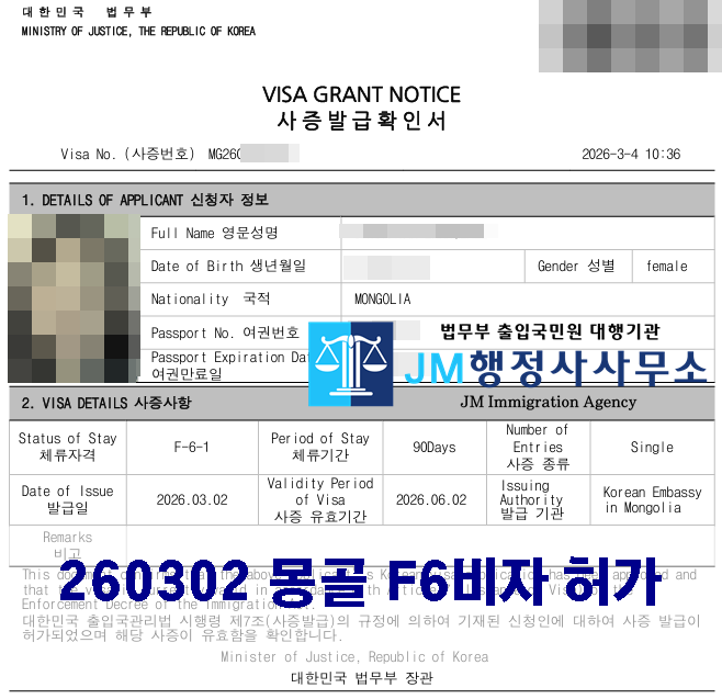 260302 몽골 F6비자 허가