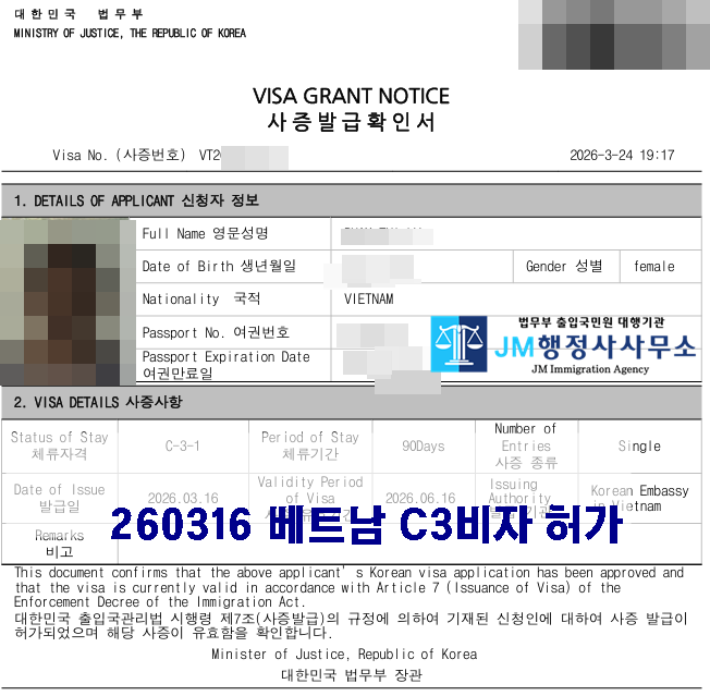 260316 베트남 C3비자 허가