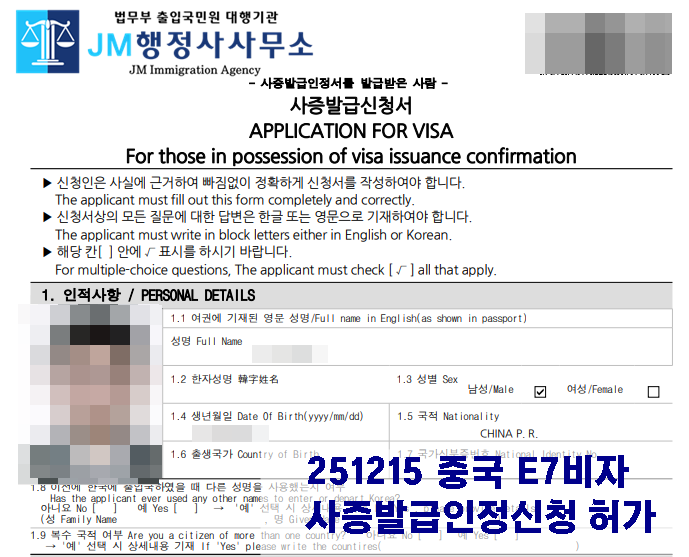 251215 중국 E7비자 사증발급인정신청 허가