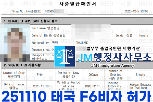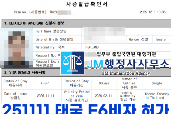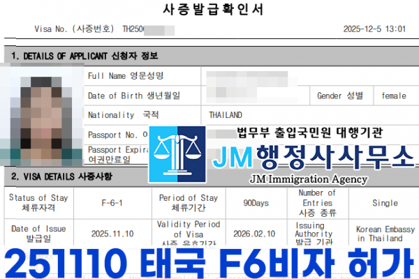 251110 태국 F6비자 허가