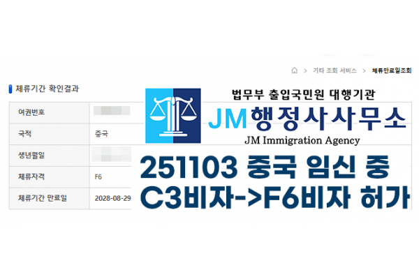251103 중국 임신 중 C3비자->F6비자 허가