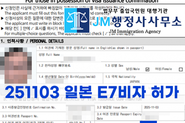 251103 일본 E7비자 허가