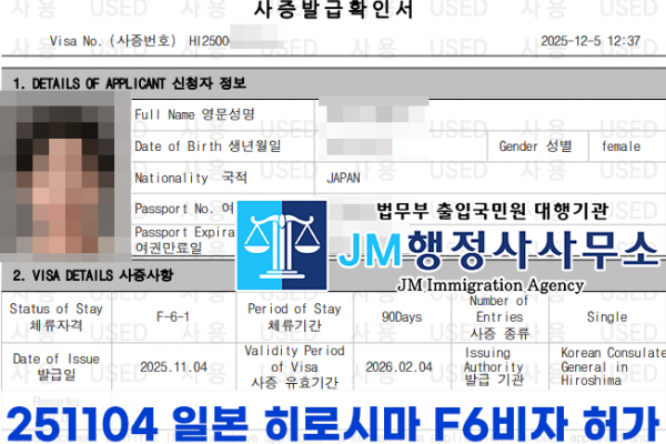 251104 일본 히로시마 F6비자 허가