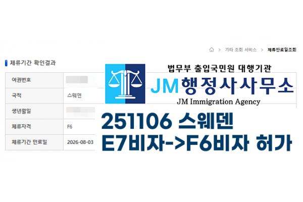 251106 스웨덴 E7비자->F6비자 허가