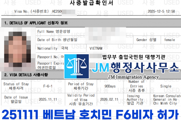 251111 베트남 호치민 F6비자 허가