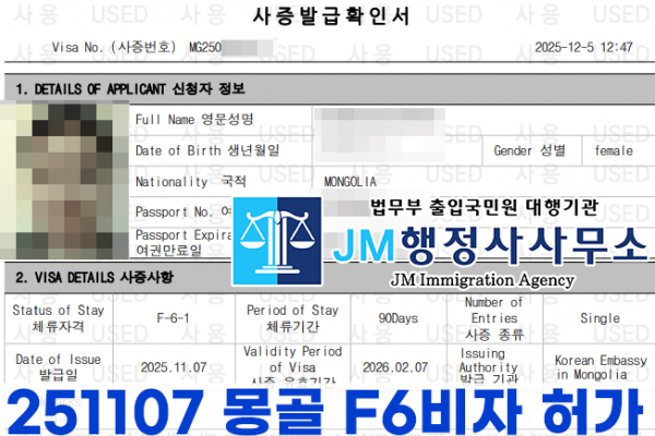 251107 몽골 F6비자 허가