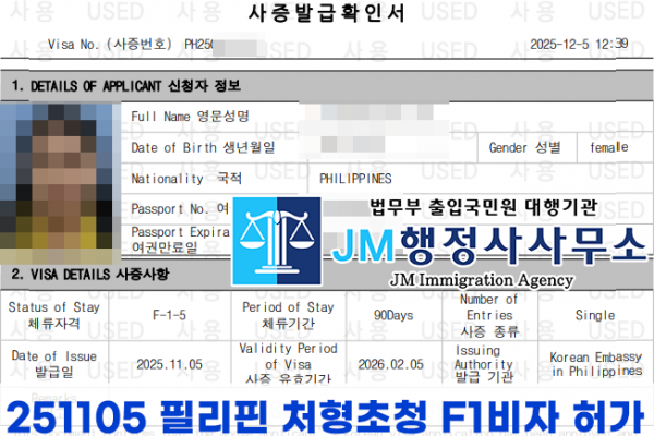 251105 필리핀 처형초청 F1비자 허가