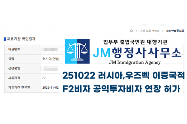 251022 러시아, 우즈벡 이중국적 F2비자 공익투자비자 연장 허가