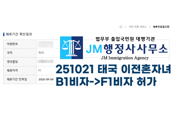 251021 태국 이전혼자녀 B1비자-F1비자 허가