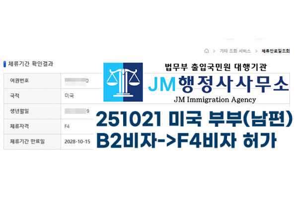 251021 미국 부부(아내) B2비자-F4비자 허가