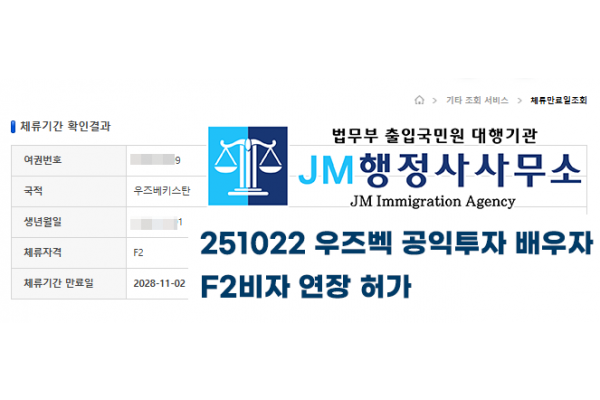 251022 우즈벡 공익투자 배우자 F2비자 연장 허가
