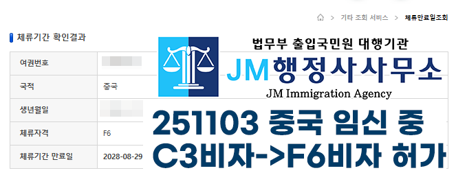 251103 중국 임신 중 C3비자->F6비자 허가