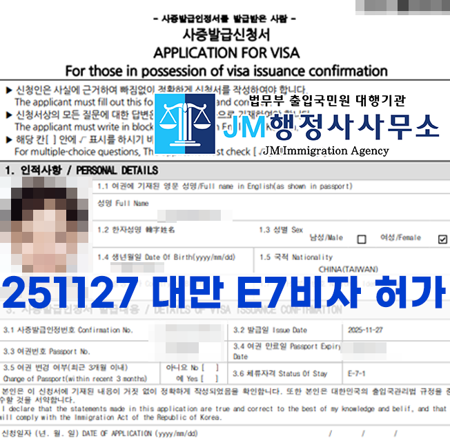 251127 대만 E7비자 허가