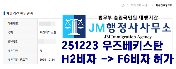 251223 우즈베키스탄 H2비자->F6비자 허가
