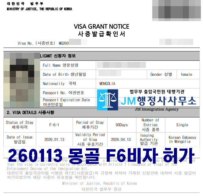 260113 몽골 F6비자 허가